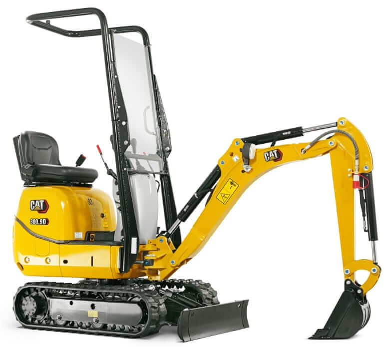 CAT 300.9D lift capacities at ground level with maximum configuration.